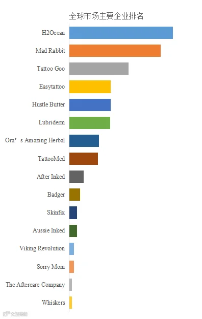 全球范围内,纹身后护理产品主要生产商包括H2Ocean, Mad Rabbit, Tattoo Goo等,其中前五大厂商占有大约32.31%的市场份额。