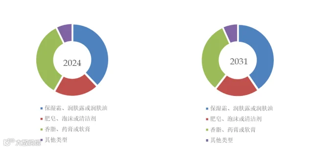就产品类型而言,目前保湿霜、润肤露或润肤油是最主要的细分产品,2024年占据大约38%的份额。