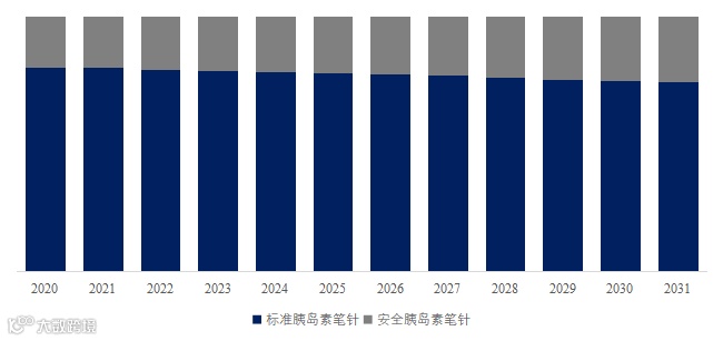 就产品类型而言,目前标准胰岛素笔针是最主要的细分产品,占据大约78.3%的份额。