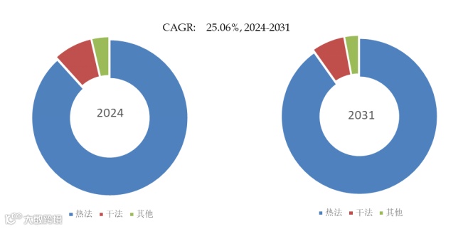 就产品类型而言,目前热法是最主要的细分产品,占据大约88.3%的份额。