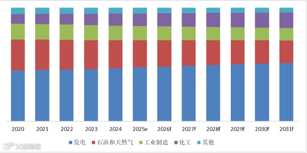 就产品类型而言,目前发电是最主要的需求来源,占据大约46.79%的份额。