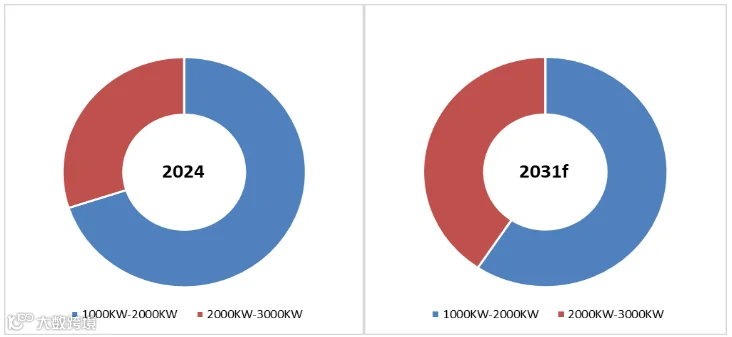 就产品类型而言,目前1000KW-2000KW是最主要的细分产品,占据大约67.9%的份额。