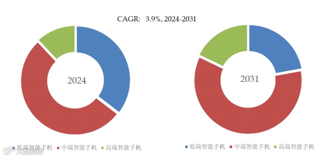 就产品应用而言,目前中端智能手机是最主要的需求来源,占据大约52.6%的份额。