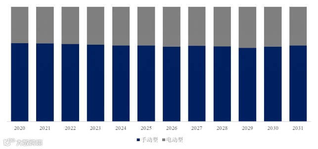 就产品类型而言,目前手动型是最主要的细分产品,占据大约66%的份额。