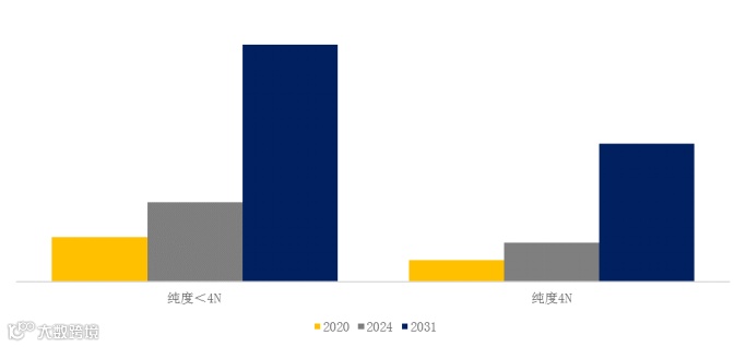 就产品类型而言,目前纯度<4N是最主要的细分产品,占据大约66.9%的份额。