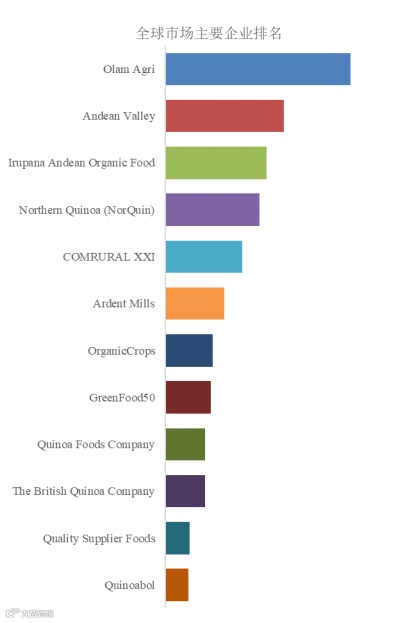 全球范围内,藜麦主要生产商包括Olam Agri, Andean Valley, Irupana Andean Organic Food, Northern Quinoa (NorQuin), COMRURAL XXI等,其中前五大厂商占有大约9.34%的市场份额。