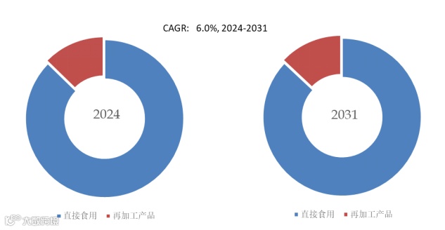 就产品应用而言,目前直接食用是最大的下游市场,2025年占有87.4%份额。