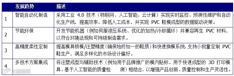 Table 3. PVC 鞋用注塑机行业发展趋势