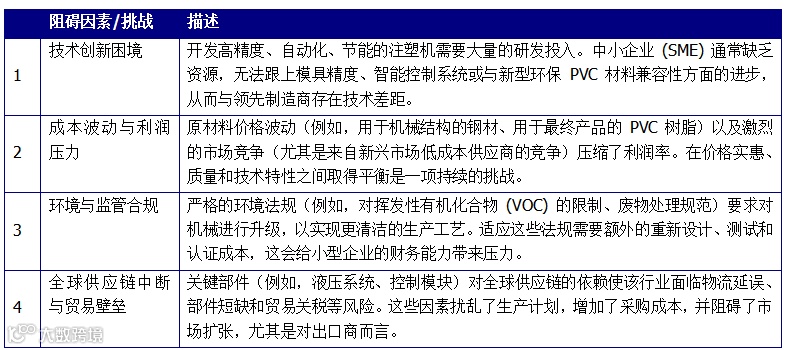 Table 5. PVC 鞋用注塑机行业发展阻碍因素/挑战