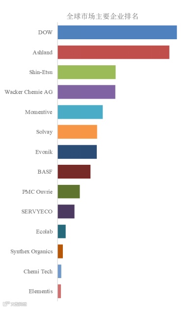 全球范围内,油性消泡剂主要生产商包括DOW,Ashland,Shin-Etsu,Wacker Chemie AG,Momentive等,其中前五大厂商占有大约38.21%的市场份额。