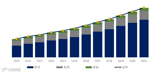 就产品应用而言,目前医用是最主要的需求来源,占据大约69.4%的份额。
