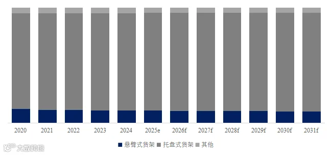 就产品类型而言,目前托盘式货架是最主要的细分产品,占据大约84.53%的份额。