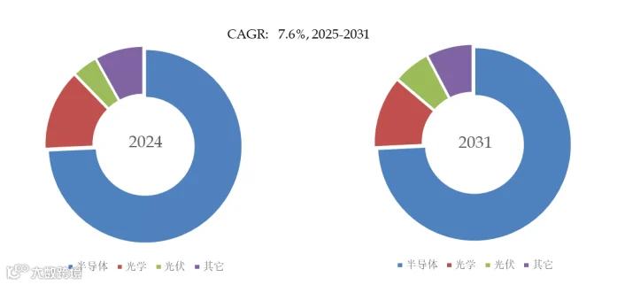 就产品应用而言,目前半导体是最主要的需求来源,占据大约74.3%的份额。