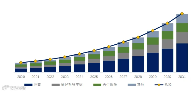 就产品应用而言,目前肿瘤是最主要的需求来源,占据大约43.5%的份额。