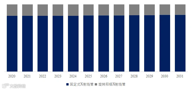 就产品类型而言,目前固定式X射线管是最主要的细分产品,占据大约83.3%的份额。