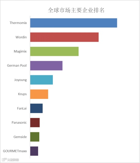 全球范围内,厨房多功能料理机主要生产商包括Thermomix、Wordin、Magimix、German Pool、Joyoung等,其中十大厂商占有大约42%的市场份额。