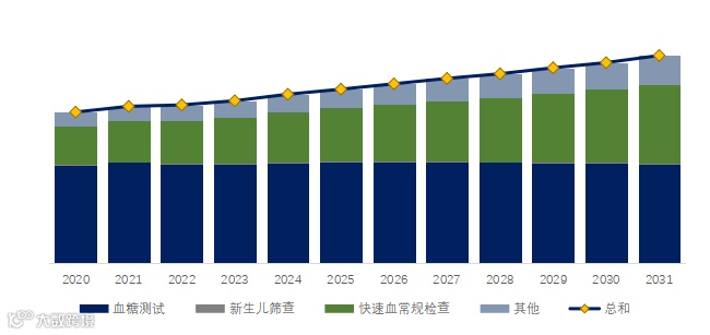 就产品应用而言,目前血糖测试是最主要的需求来源,占据大约59.3%的份额。
