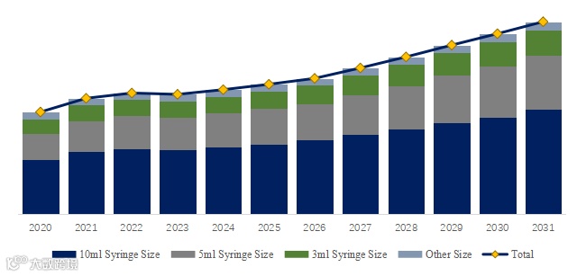 就产品类型而言,目前10ml Syringe Size是最主要的细分产品,占据大约54.2%的份额。