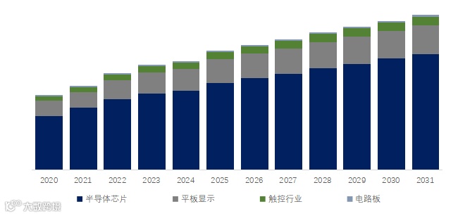 就产品应用而言,目前半导体芯片是最主要的需求来源,占据大约72.6%的份额。