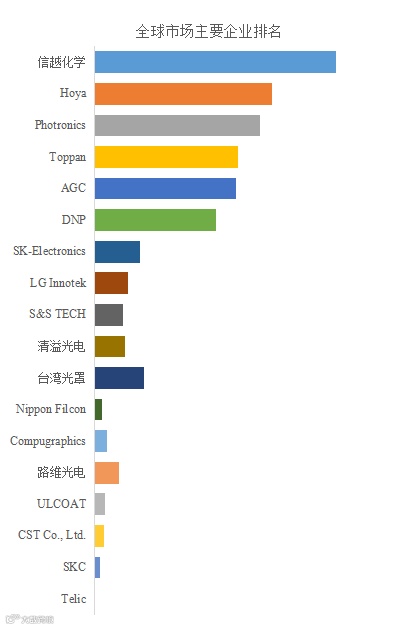 就产品类型而言,目前掩膜版是最主要的细分产品,占据大约66.5%的份额。