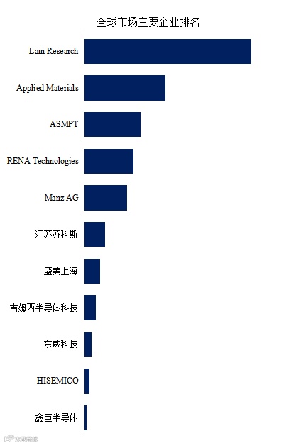 全球范围内,TGV电镀机主要生产商包括Lam Research, HISEMICO, Applied Materials等,其中前五大厂商占有大约74.42%的市场份额。