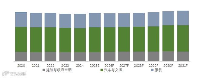 就产品应用而言,目前汽车与交运是最主要的需求来源,占据大约44.9%的份额。