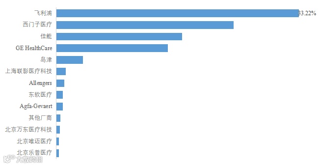 全球范围内,数字减影血管造影系统主要生产商包括飞利浦、西门子医疗和佳能等,其中前五大厂商占有大约92.90%的市场份额。