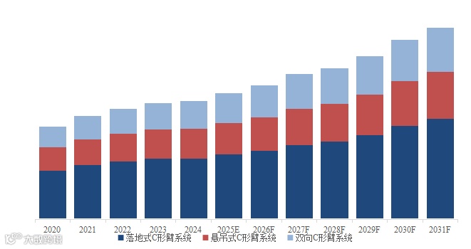 就产品类型而言,目前落地式C形臂是最主要的细分产品,占据大约占51.50%的份额。