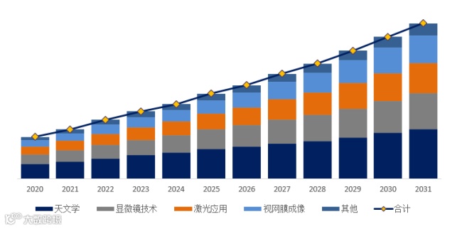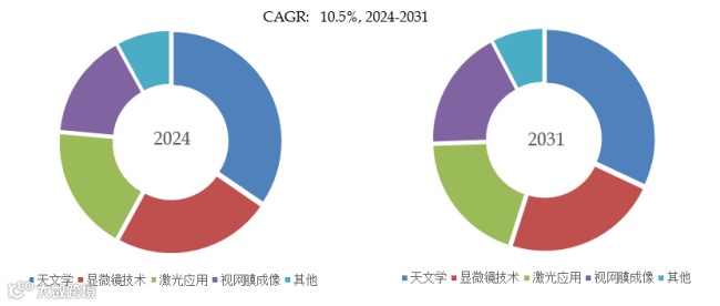 就产品应用而言,目前天文学是最主要的需求来源,占据大约34.6%的份额。