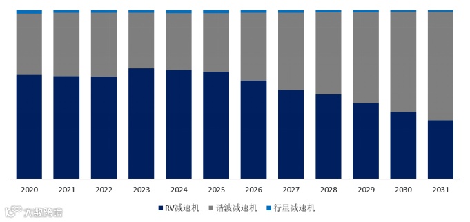 就产品类型而言,目前RV减速机是最主要的细分产品,占据大约65.4%的份额。