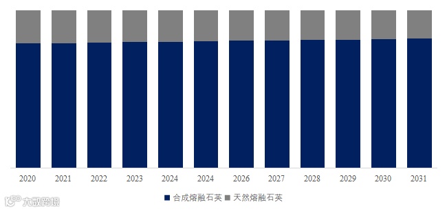 就产品类型而言,目前合成熔融石英是最主要的细分产品,占据大约80.0%的份额。