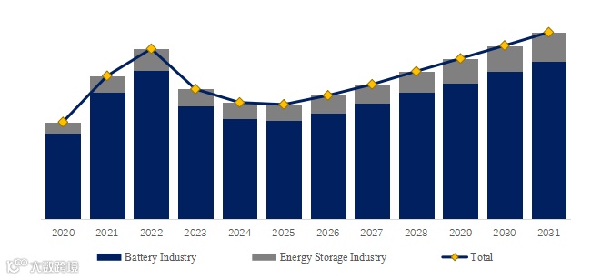 就产品应用而言,目前Battery Industry是最主要的需求来源,占据大约86.5%的份额。