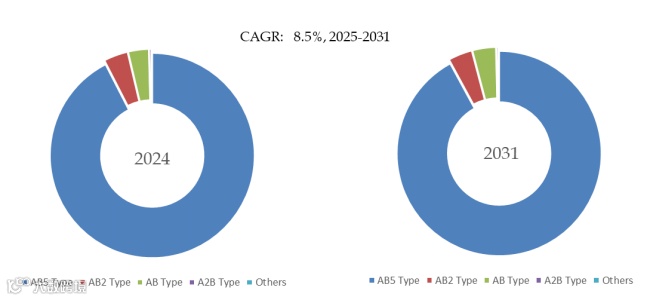 就产品类型而言,目前AB5 Type是最主要的细分产品,占据大约92.5%的份额。