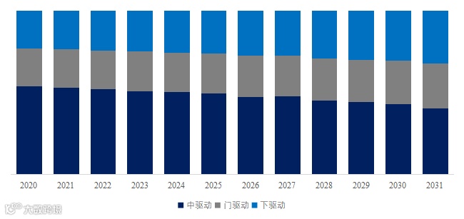就产品类型而言,目前中驱动是最主要的细分产品,占据大约50.6%的份额。