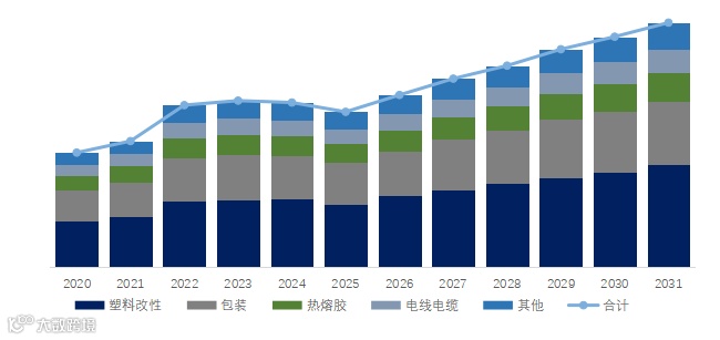 乙烯-丙烯酸乙酯共聚物(EEA)的优异性能使其能够广泛应用于各个领域。随着塑料复合和包装等行业需求的持续增长,预计会带动乙烯-丙烯酸乙酯共聚物(EEA)产能增长。