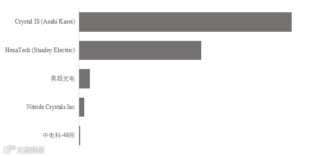 2024 年市场由少数头部企业主导:Crystal IS、HexaTech为第一梯队,其余如 Ultratrend、Nitride Crystals、CETC-46 为Tier 2/3。头部两家公司在 2024 年合计占市场绝大部分份额。