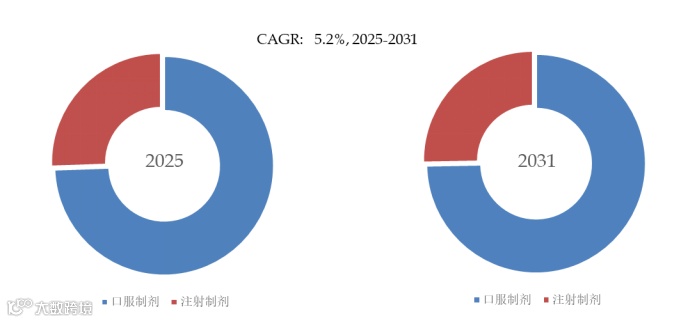 图4. 克拉维酸钾原料药,全球市场规模,按应用细分,口服制剂是最大的下游市场