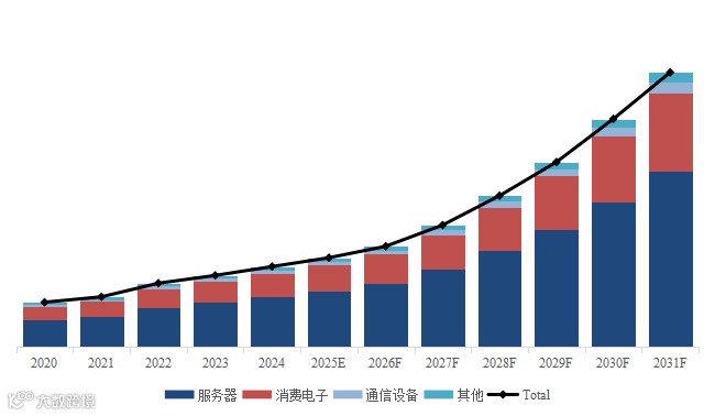 从该图表可以看出,算力散热结构件在服务器领域的市场份额最大。