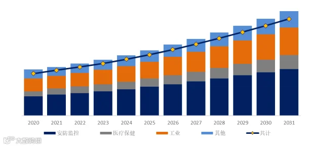 就产品应用而言,目前安防监控是最主要的需求来源,占据大约33.3%的份额。