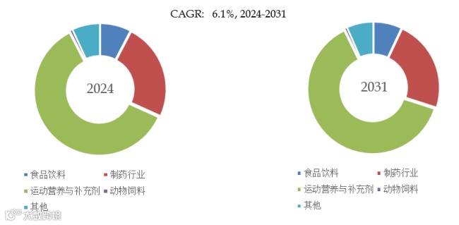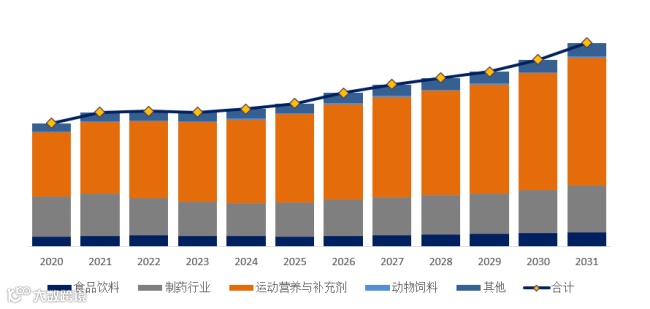 就产品应用而言,目前运动营养与补充剂是最主要的需求来源,占据大约60.7%的份额。