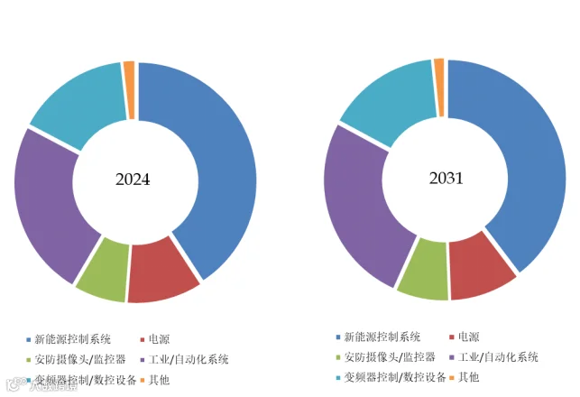 就产品应用而言,目前新能源控制系统是最主要的需求来源,占据大约40.80%的份额。