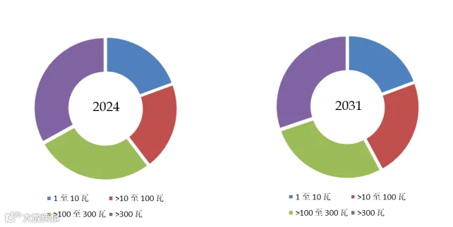 就产品类型而言,目前大于300瓦(基于销售额)是最主要的细分产品,占据大约33.09%的份额。