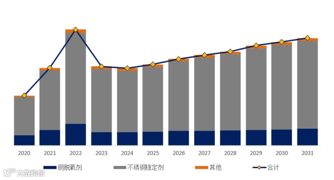 就产品应用而言,目前不锈钢稳定剂是最主要的需求来源,占据大约80.1%的份额。