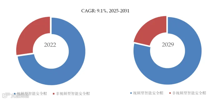 就产品类型而言,目前视频型智能安全帽是最主要的细分产品,占据大约72.7%的份额。
