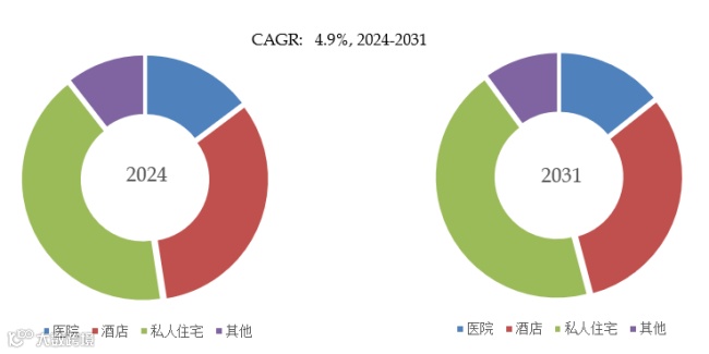 图00005. 丙烯酸固体表面,全球市场规模,按应用细分,私人住宅是最大的下游市场,占有41.9%份额。