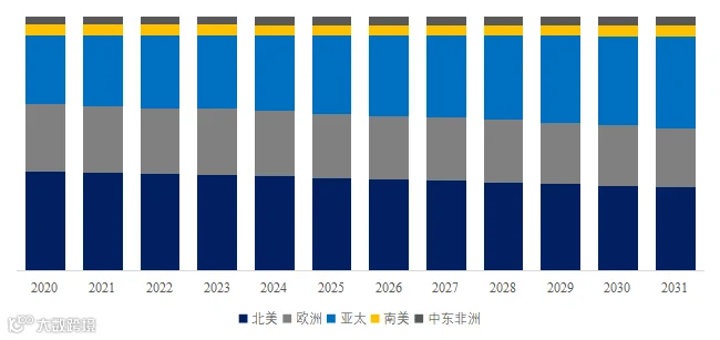 图5. 全球电动轮椅车规模,主要销售地区份额(按销售额)