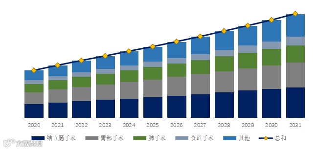 就产品应用而言,目前结直肠手术是最主要的需求来源,占据大约29.3%的份额。