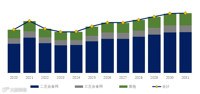 就产品类型而言,目前二元合金网是最主要的细分产品,占据大约67.9%的份额。