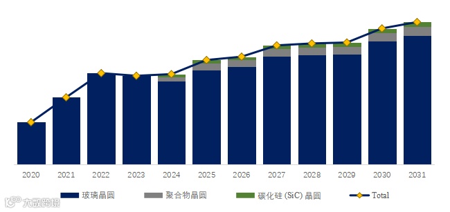 就产品类型而言,目前玻璃晶圆是最主要的细分产品,占据大约92.2%的份额。
