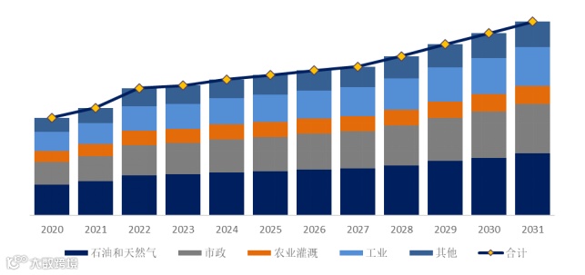 就产品应用而言,目前石油和天然气是最主要的需求来源,占据大约31.8%的份额。